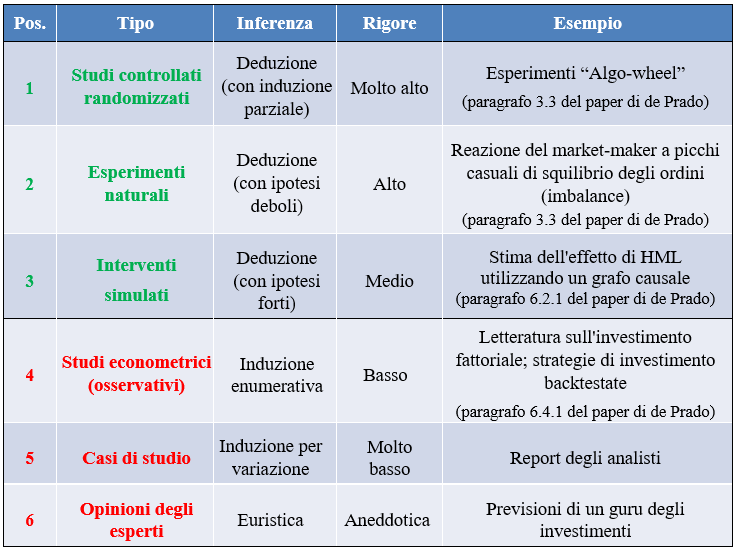 La classificazione può essere discutibile nei dettagli, ma risulta difficile metterne in discussione l’intuizione di fondo: in un ambiente in cui individui e istituzioni hanno interesse a presentare evidenza debole come se fosse solida, una gerarchia di questo tipo introduce un elemento di attrito, se non addirittura di imbarazzo.