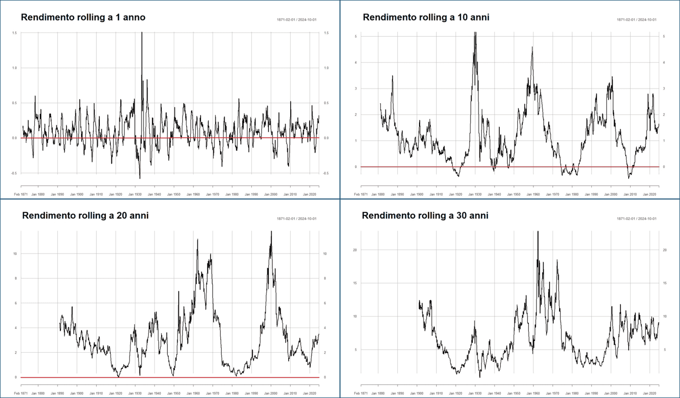 Il dato assume ancora maggior rilevanza considerando che questo periodo include eventi drammatici come la Grande Depressione, due Guerre Mondiali, la stagflazione degli anni '70 e le due gravi crisi (dotcom e subprime) del primo decennio degli anni 2000.